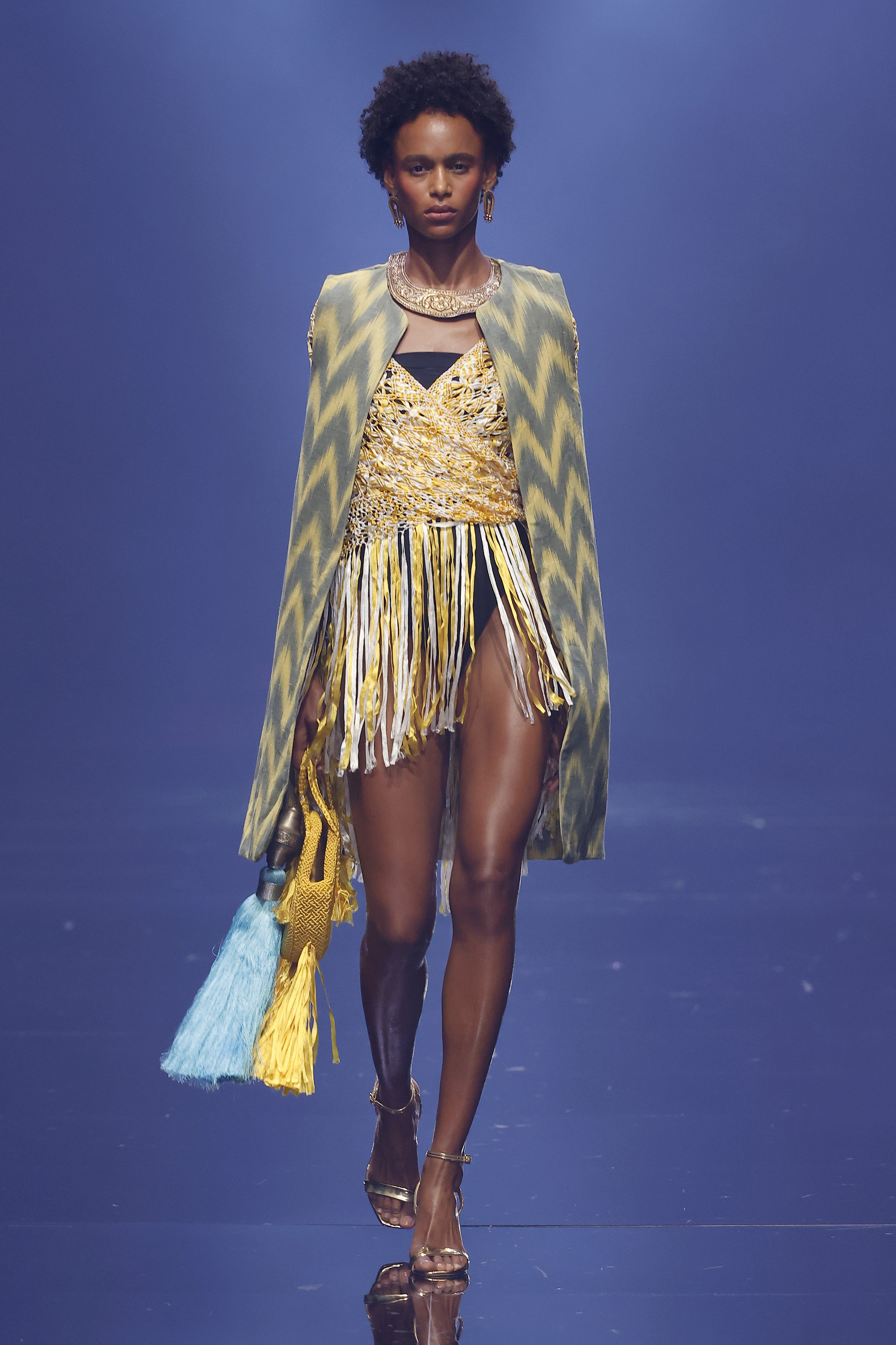 Una fusión de culturas, tejidos y texturas donde el color y las joyas heredadas de su madre dan vida a un estilismo étnico y sofisticado. Sobre Teixits Riera: Fundada en 1896 en Lloseta, Mallorca, Teixits Riera es la última fábrica artesanal de “telas de llengües”, un tejido icónico de la isla elaborado en telares tradicionales. Sus diseños atemporales reflejan la identidad cultural mallorquina y preservan un saber hacer transmitido durante generaciones
