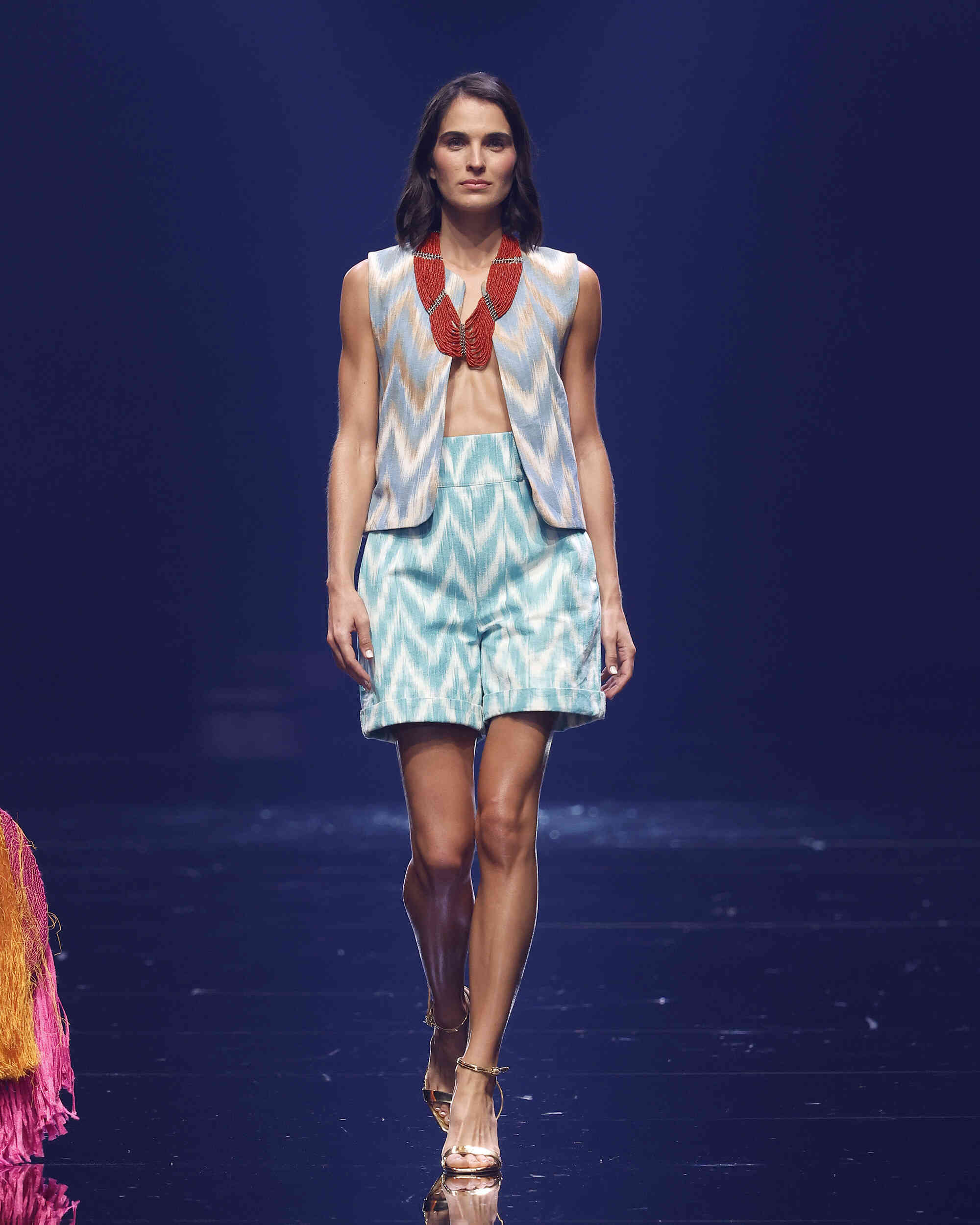 Una fusión de culturas, tejidos y texturas donde el color y las joyas heredadas de su madre dan vida a un estilismo étnico y sofisticado. Sobre Teixits Riera: Fundada en 1896 en Lloseta, Mallorca, Teixits Riera es la última fábrica artesanal de “telas de llengües”, un tejido icónico de la isla elaborado en telares tradicionales. Sus diseños atemporales reflejan la identidad cultural mallorquina y preservan un saber hacer transmitido durante generaciones