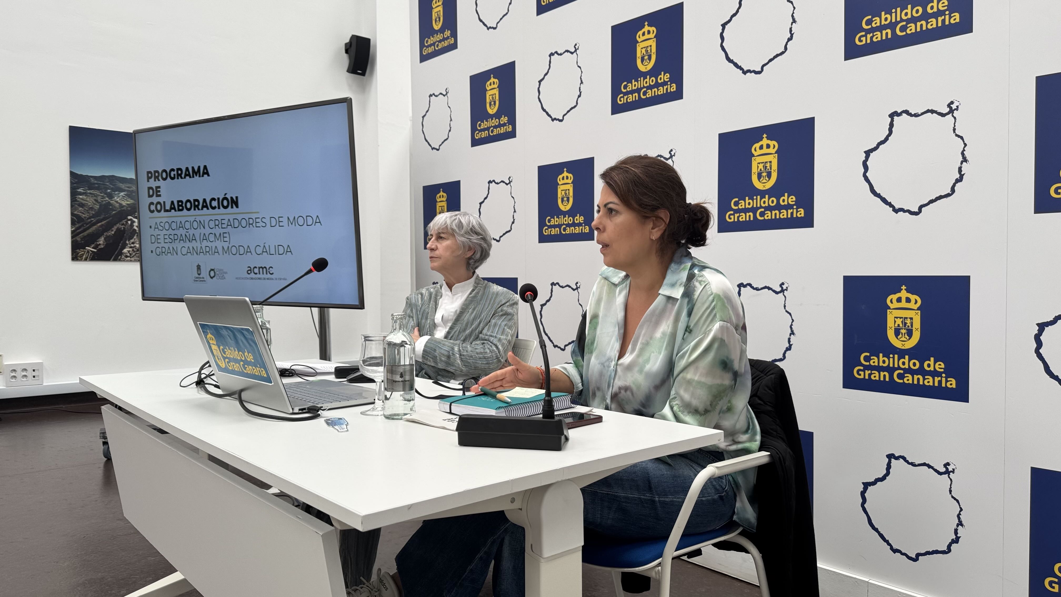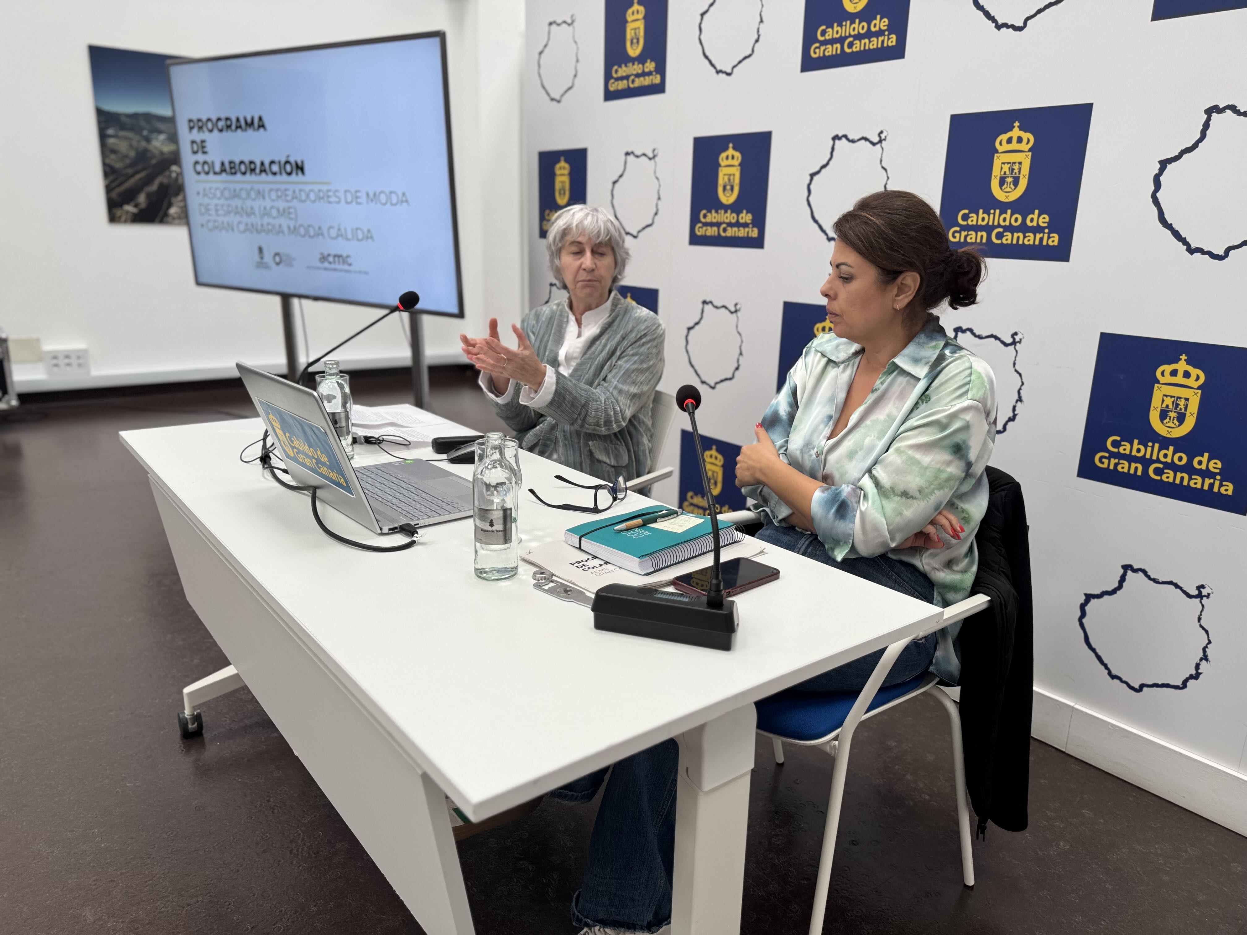 Durante la rueda de prensa celebrada en la Casa Palacio del Cabildo de Gran Canaria, la consejera de Desarrollo Económico, Industria, Comercio y Artesanía, Minerva Alonso, y la directora ejecutiva de ACME, Pepa Bueno, han detallado una hoja de ruta centrada en la formación, la profesionalización del sector y la proyección nacional de los diseñadores vinculados al programa.