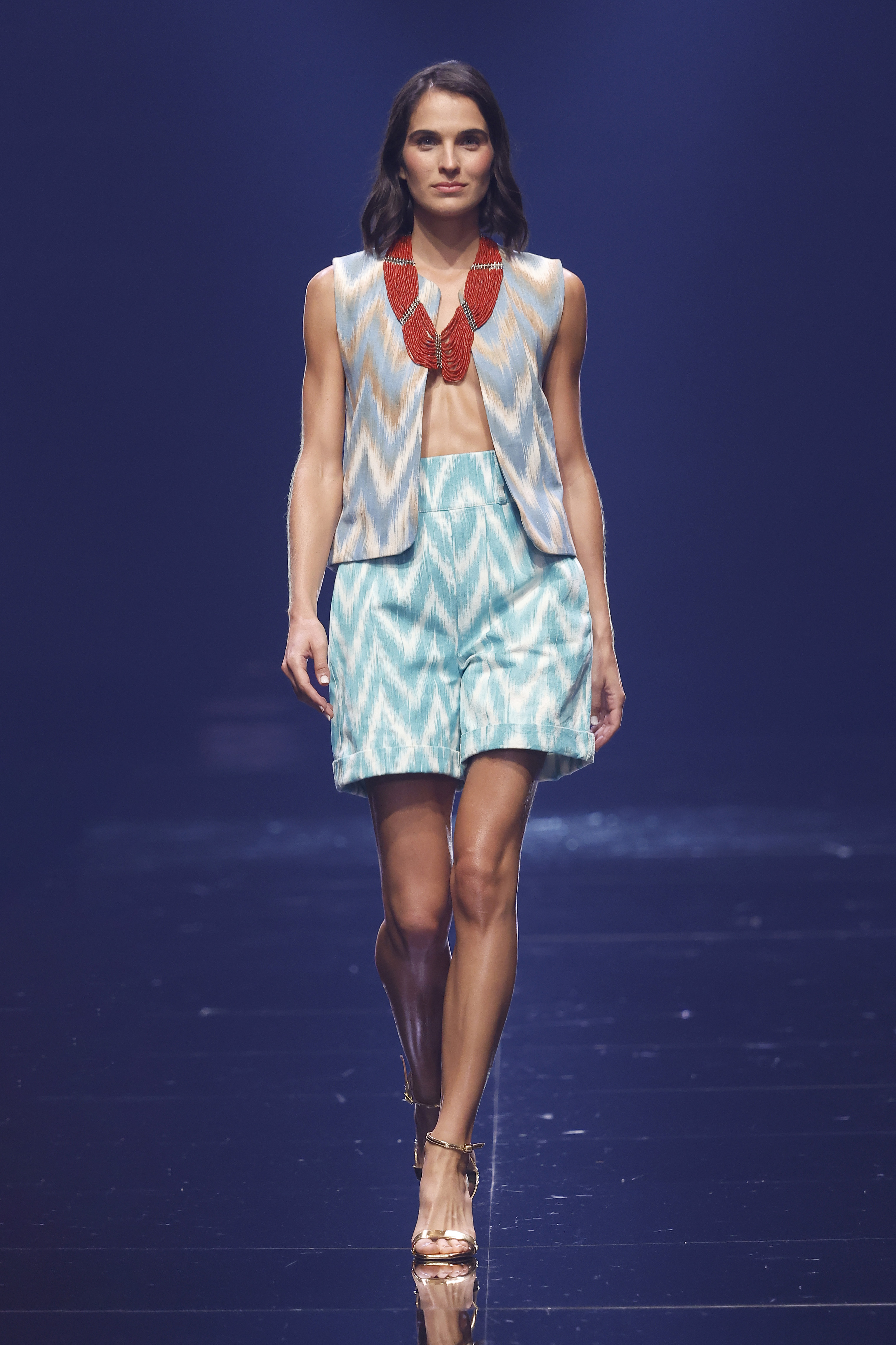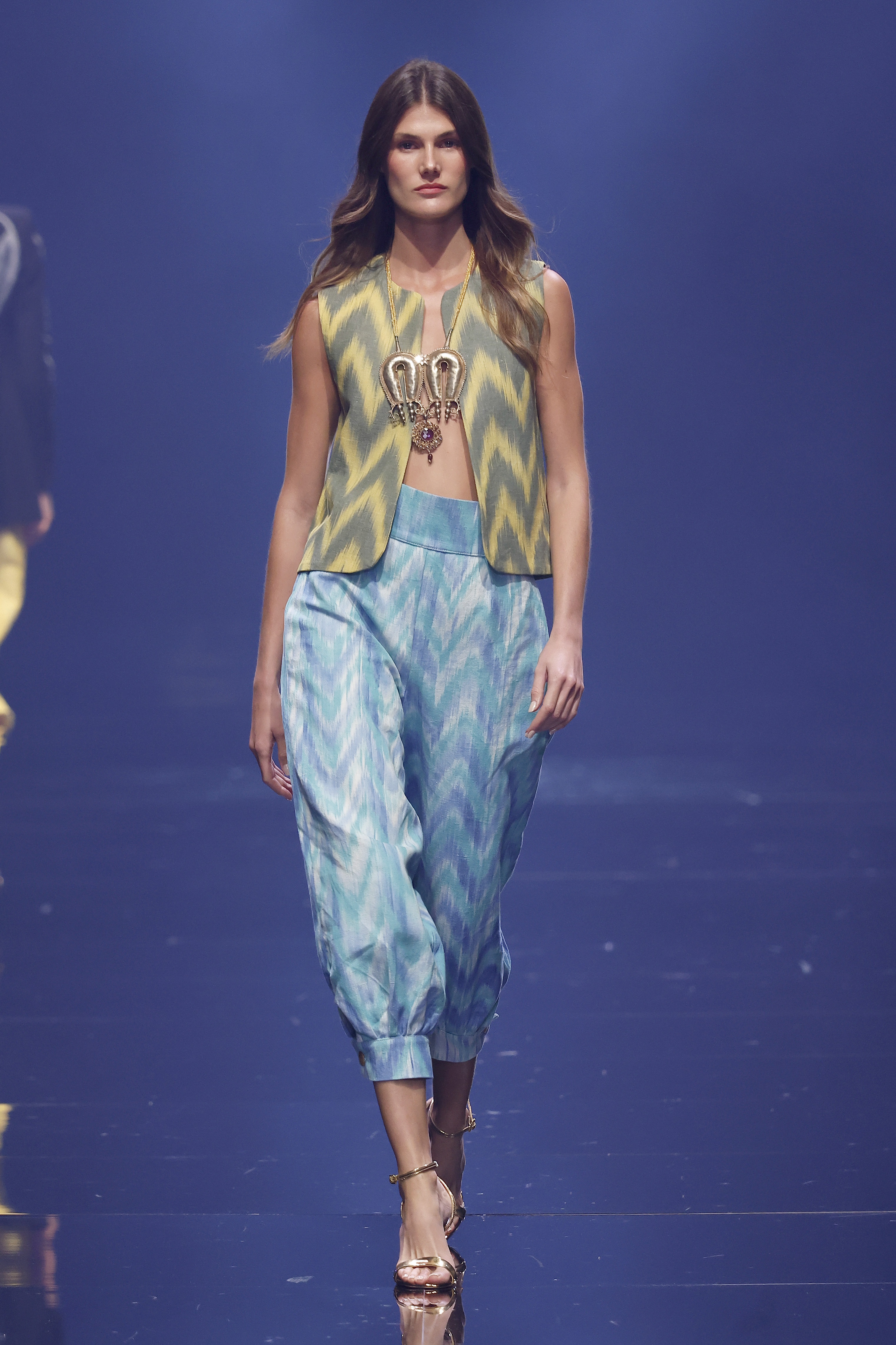 Una fusión de culturas, tejidos y texturas donde el color y las joyas heredadas de su madre dan vida a un estilismo étnico y sofisticado. Sobre Teixits Riera: Fundada en 1896 en Lloseta, Mallorca, Teixits Riera es la última fábrica artesanal de “telas de llengües”, un tejido icónico de la isla elaborado en telares tradicionales. Sus diseños atemporales reflejan la identidad cultural mallorquina y preservan un saber hacer transmitido durante generaciones