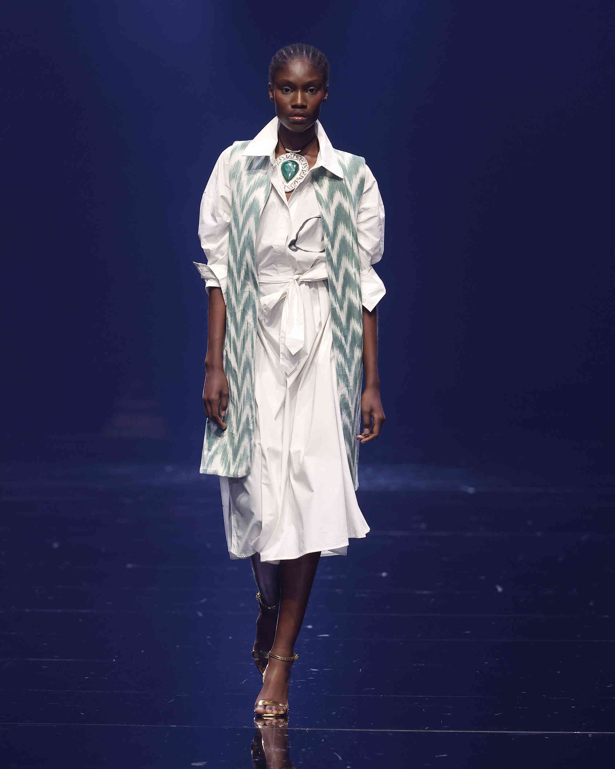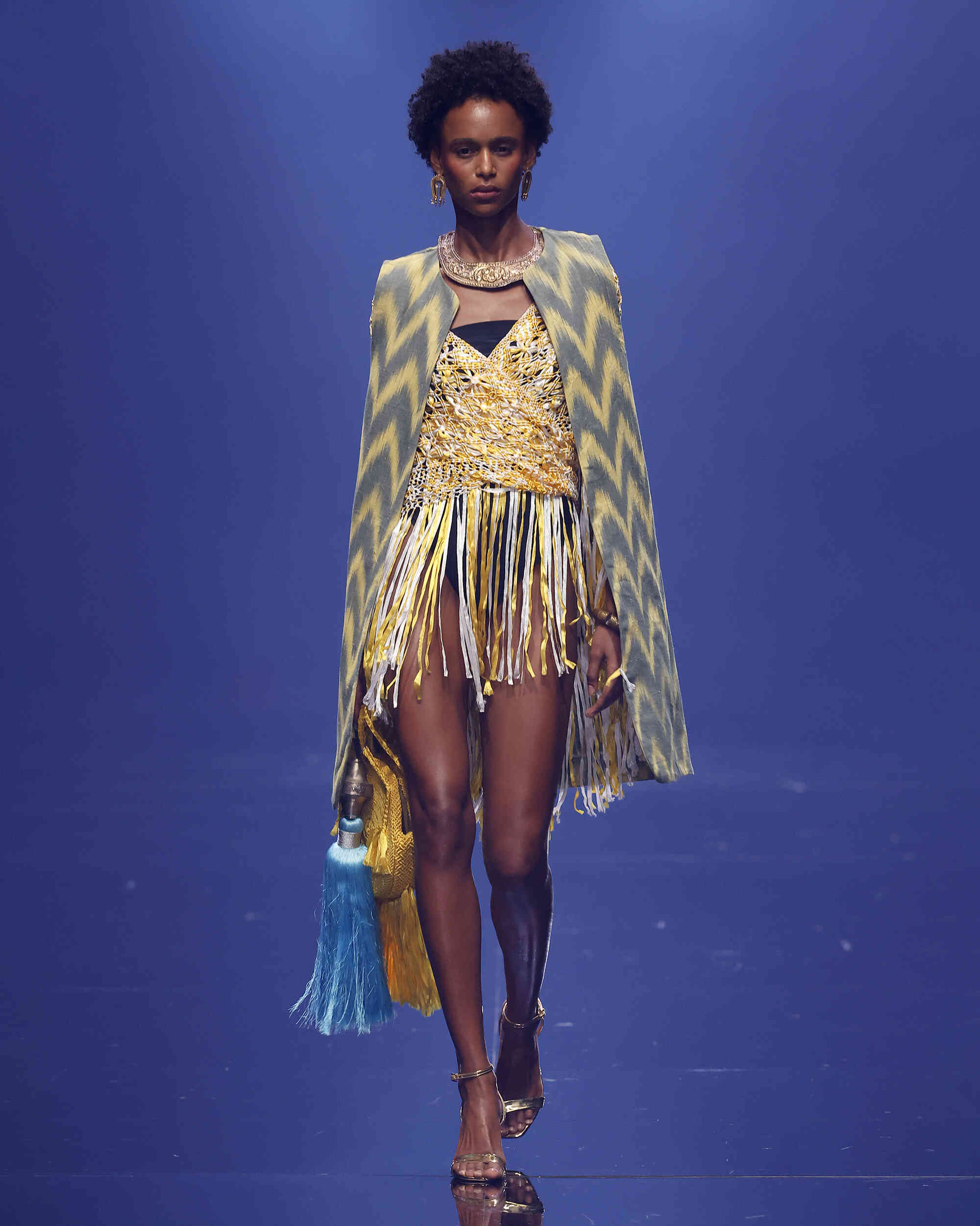 Una fusión de culturas, tejidos y texturas donde el color y las joyas heredadas de su madre dan vida a un estilismo étnico y sofisticado. Sobre Teixits Riera: Fundada en 1896 en Lloseta, Mallorca, Teixits Riera es la última fábrica artesanal de “telas de llengües”, un tejido icónico de la isla elaborado en telares tradicionales. Sus diseños atemporales reflejan la identidad cultural mallorquina y preservan un saber hacer transmitido durante generaciones