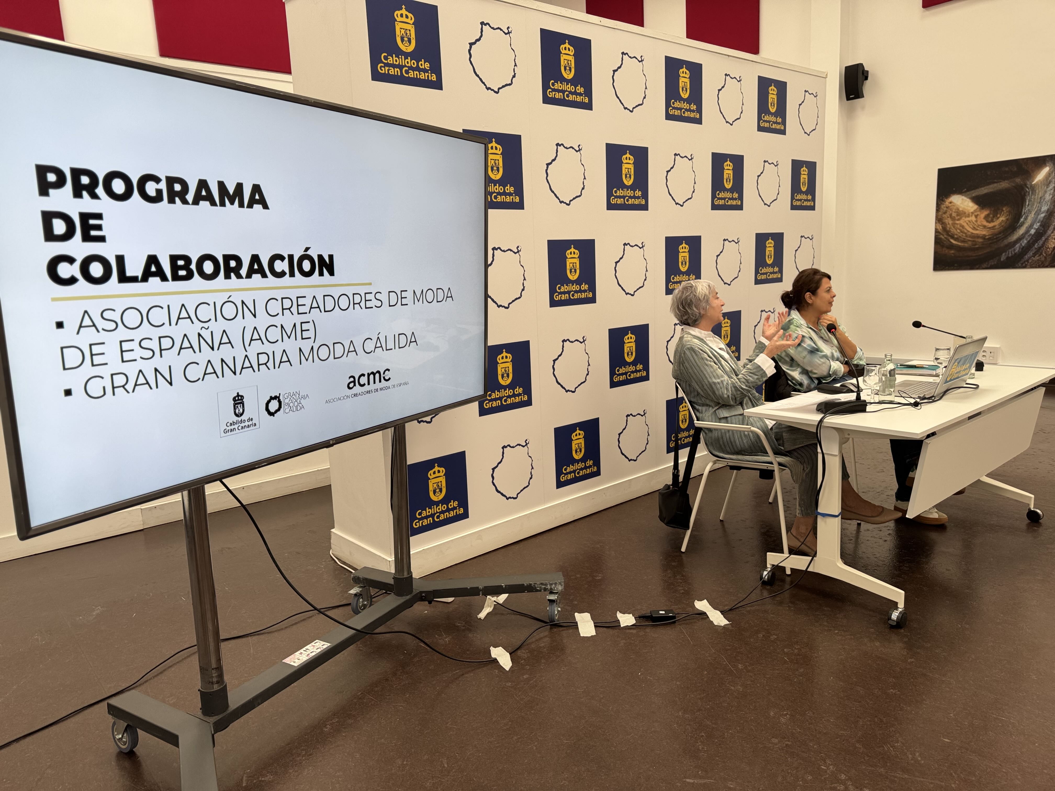 Durante la rueda de prensa celebrada en la Casa Palacio del Cabildo de Gran Canaria, la consejera de Desarrollo Económico, Industria, Comercio y Artesanía, Minerva Alonso, y la directora ejecutiva de ACME, Pepa Bueno, han detallado una hoja de ruta centrada en la formación, la profesionalización del sector y la proyección nacional de los diseñadores vinculados al programa.