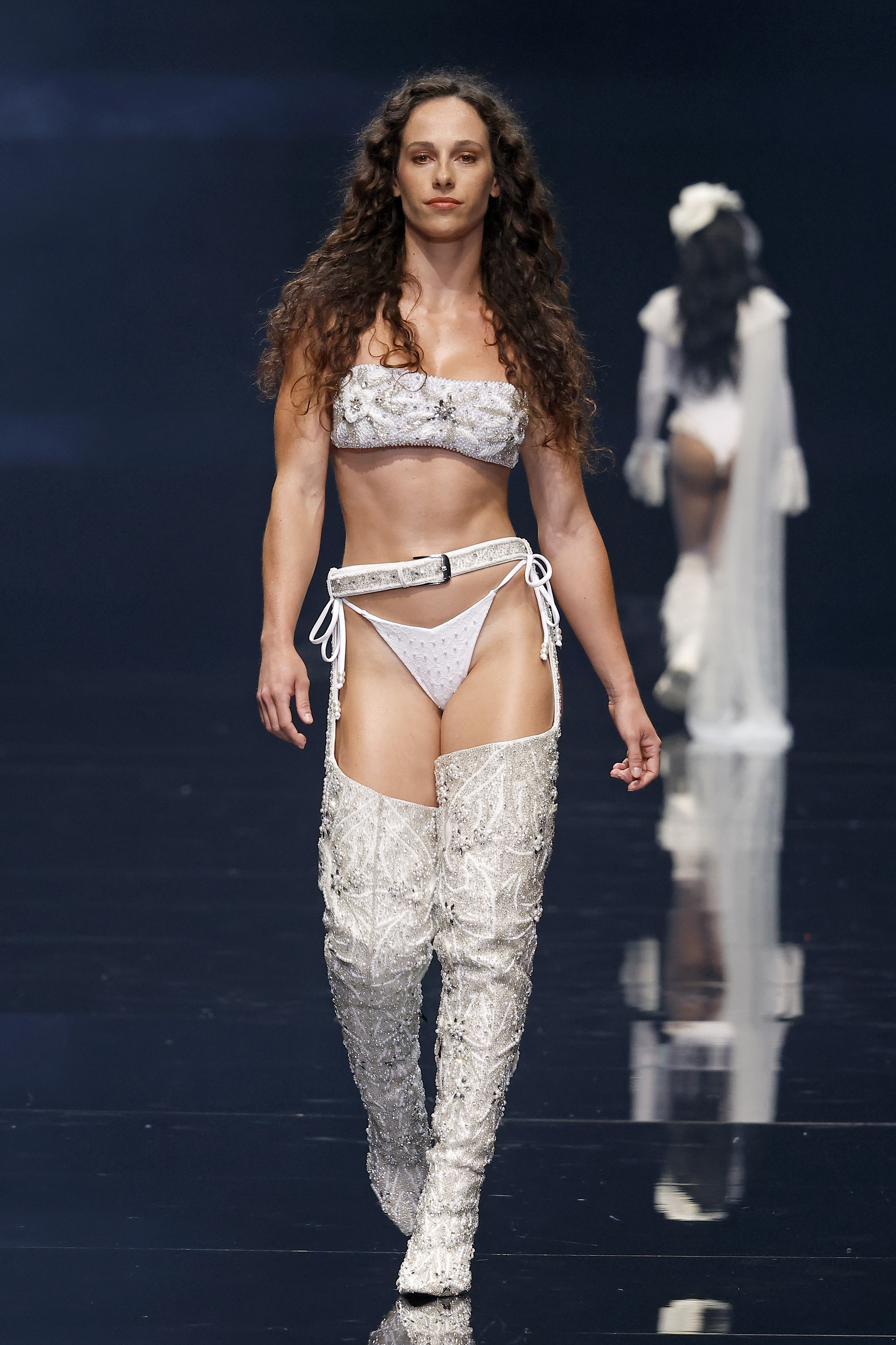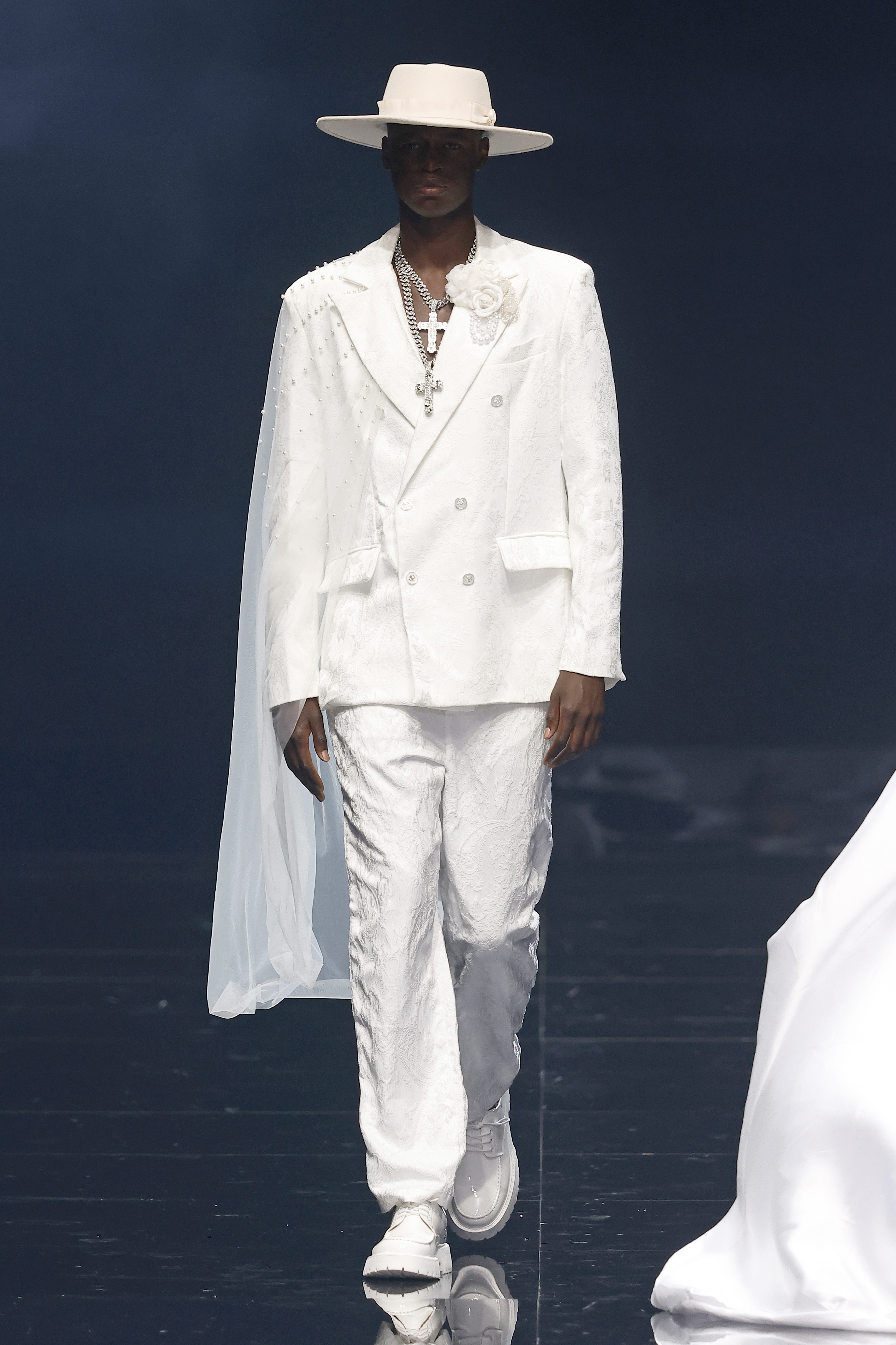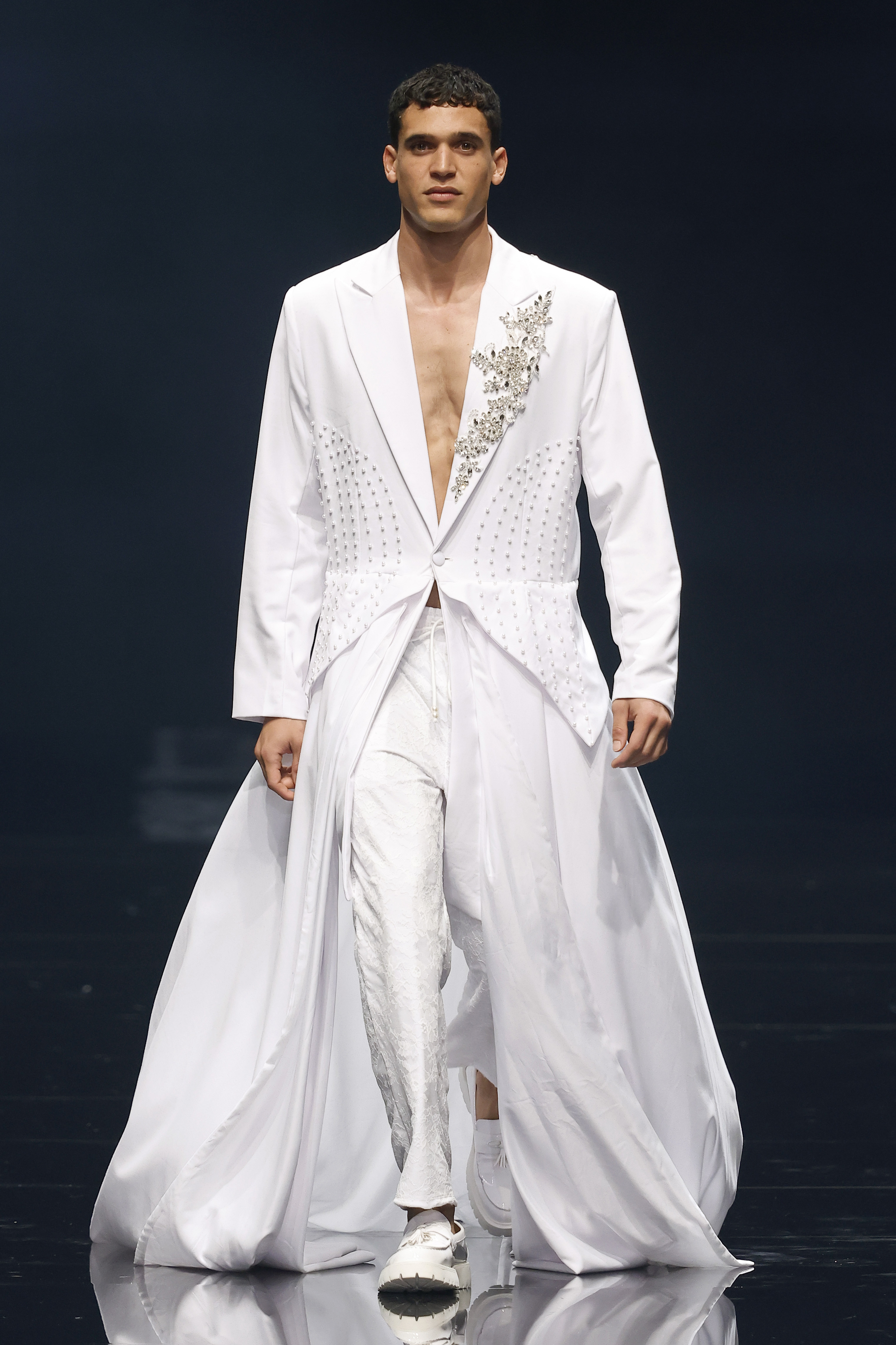 "Mi inspiración para Amour Oui proviene del romance eterno de los viajes y la poesía de las flores, y el poder transformador de la palabra más hermosa del amor: sí." Las flores, como símbolos eternos del amor—rosas para la pasión, lirios para la pureza, peonías para la devoción—se transforman delicadamente en encaje, bordados y detalles exquisitos que florecen en cada creación. En el corazón de la colección yace el momento del "Sí", ese latido en el que el amor se convierte en eterno, capturado en el brillo de las perlas, la suavidad de las sedas drapeadas y la complejidad del trabajo a mano. Cada pieza es una oda a la artesanía hecha a mano, celebrando la tradición atemporal de la alta costura, donde cada puntada es una carta de amor y cada detalle un recuerdo preciado.